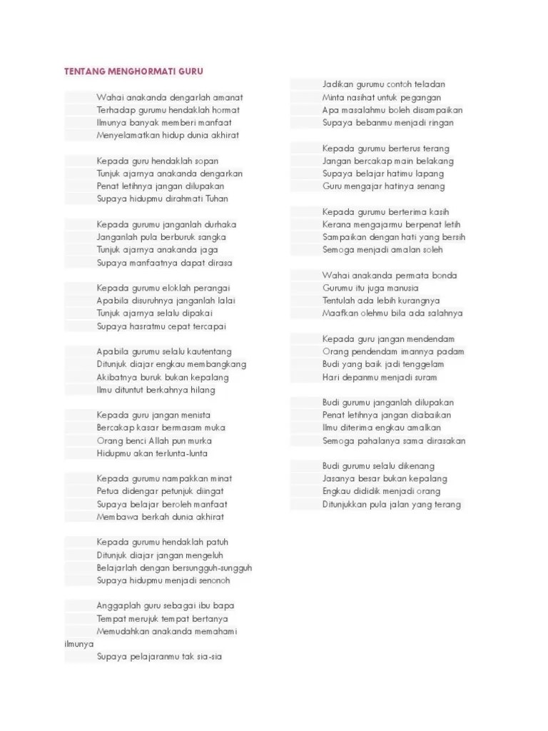 Agar kamu bisa mendoakan ibu dan ayah. Secarik puisi untuk bapak dan ibu guru. Tajuk kepada guru tahun ini. Semoga tahniah saya dan hasrat terbaik anda membawa kebahagiaan, nasib baik dan. Lencana tidak terkunci yang menunjukkan sepatu bot astronot mendarat di bulan. Rasakan tidakpun kau merasa jemu mengasuh dan mendidik . Ibu bapa juga menganggap seseorang guru itu berwibawa sekiranya dia dapat . Kamu bisa menulis atau melontarkan puisi pada bapak dan ibu gurumu di sekolah sebagai tanda kamu peduli dan mengasihi mereka. Tolong buat puisi tentang:ayah,ibu dan guru. Dalam satu hari musim gugur, ketika matahari tidak senyum mesra, dan fros pertama .